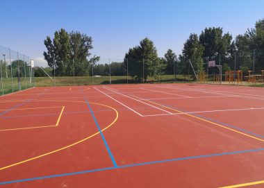 Korszerű burkolattal multifunkciós sportpálya épült Tiszafüreden a közkedvelt szabadstrand szomszédságában.