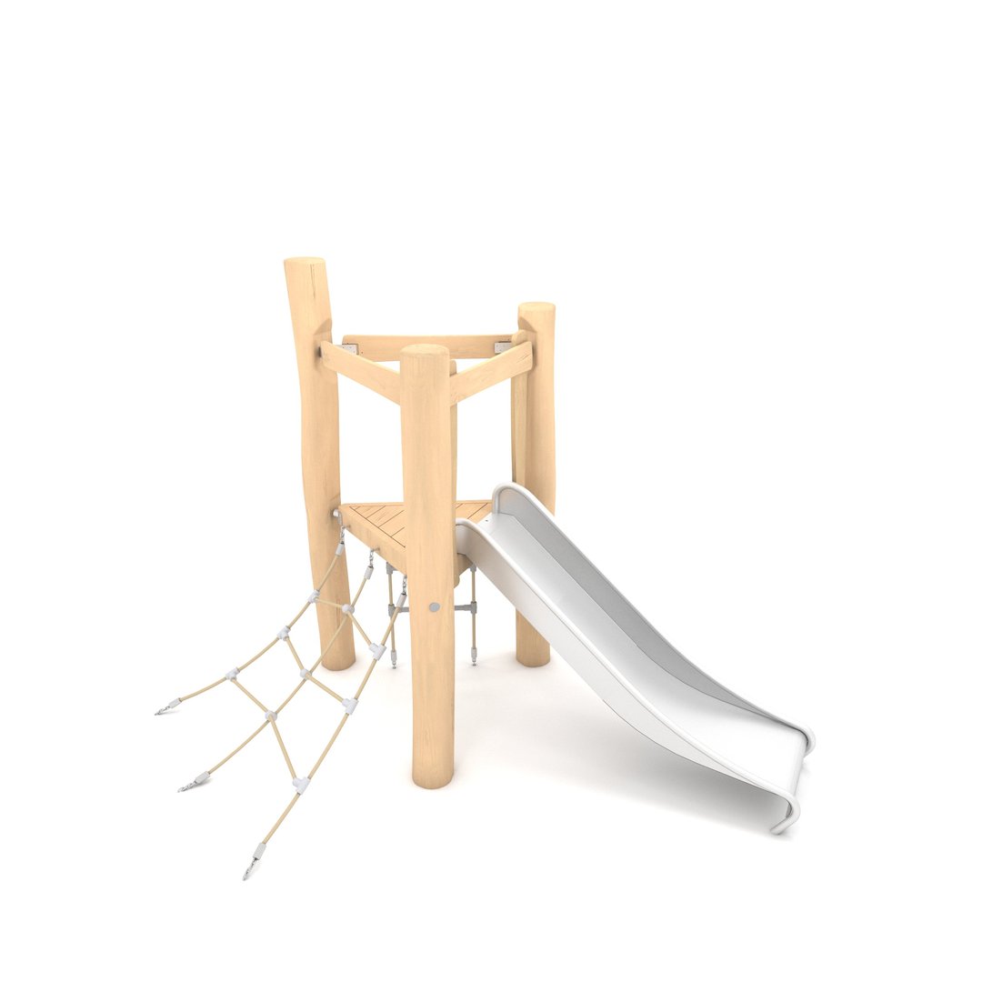 Egytornyú alacsony játszóvár csúszdával, mászókákkal RB