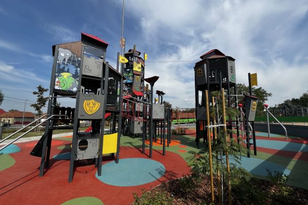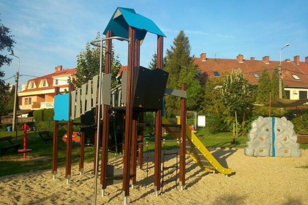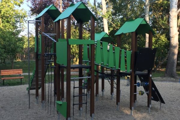 Aktivitást ösztönző játszótér kalandpark szerű kötélutakkal